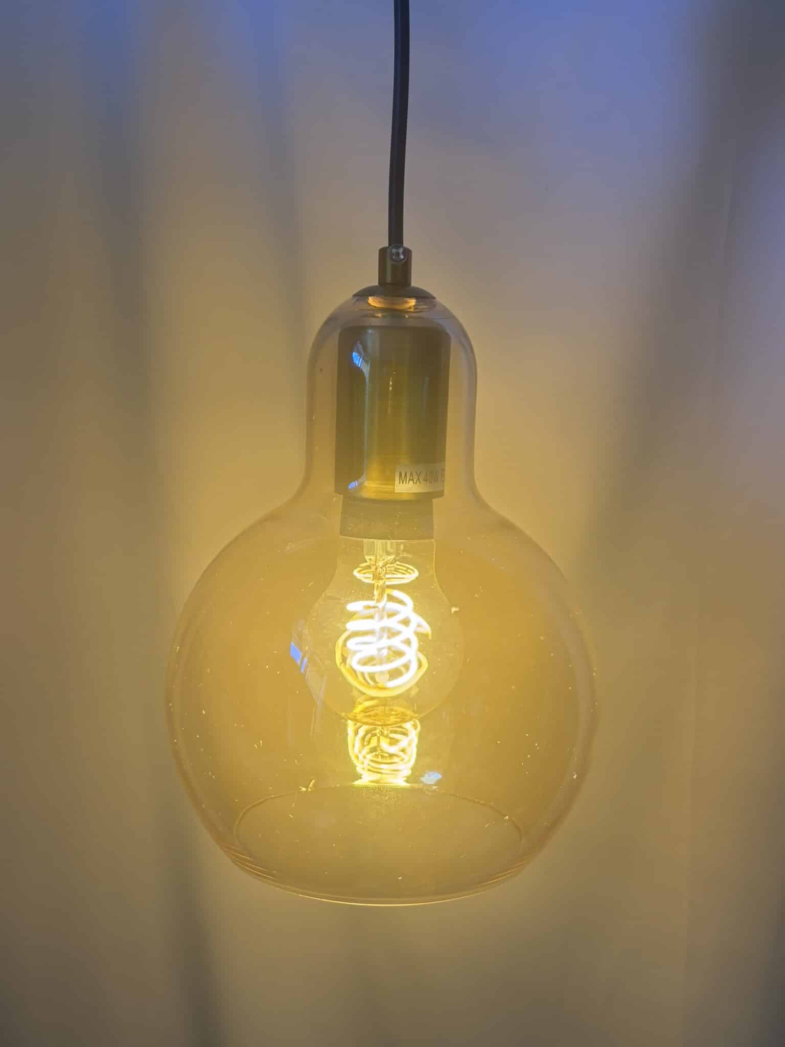 Dwie eleganckie lampy wiszące w kształcie kuli, wykonane ze szkła. Lampy emitują ciepłe, przytulne światło, które stworzy niepowtarzalny nastrój w Twoim domu. Idealne jako oświetlenie nad stołem, w sypialni lub w salonie. Cena jest niższa ponieważ jedna z kuli jest nieznacząco ukruszona.